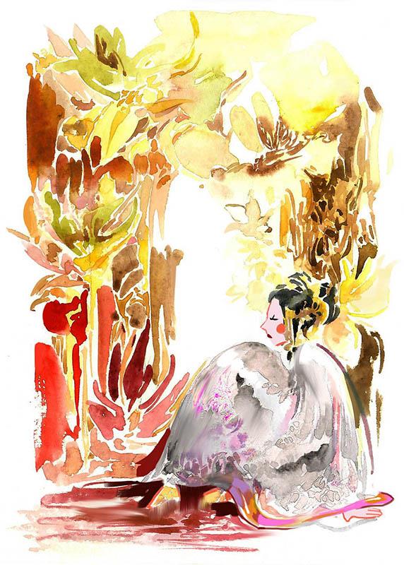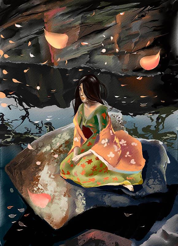 Всё птицы замолкли в саду, и ветер стих, не расстилая больше ковёр лепестков у ног Айминь.
