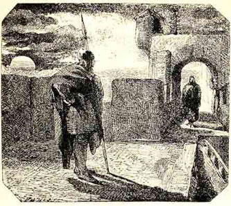 Но вот до молодого Гамлета дошли слухи, будто призрак, поразительно похожий на покойного короля, стал являться солдатам, стоящим на карауле у террасы перед замком. Рассказывали, что призрак появляется уже несколько ночей сряду, ровно в полночь, всегда в одном и том же одеянии, вооруженный с ног до головы… Многие, кому довелось видеть призрак, – а среди них был также и лучший друг Гамлета, Горацио, – подтверждали, что это истинная правда. Призрак появлялся ровно в полночь. Он был мертвенно-бледен и казался глубоко удрученным… Борода у него была с проседью. Он не отвечал, когда к нему обращались со словами вопросов, раз только поднял голову и сделал движение, как бы намереваясь заговорить, но в это мгновение послышался пронзительный крик первого петуха, и призрак моментально исчез.