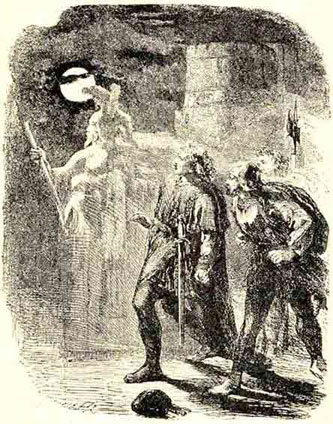 Вечером он стал на караул на террасе перед дворцом вместе со своим другом Горацио и Марцеллом – одним из солдат. Была холодная ночь. Все трое разговорились о необыкновенно сильном морозе, который так и пощипывал… Вдруг Горацио шепотом сообщил о появлении призрака.