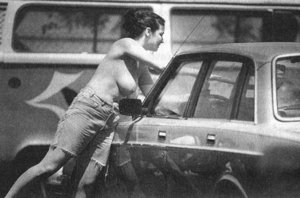 87. Мойщица машин топлес. Санта-Крус, Калифорния. Август 1993 года. В Санта-Крус студентки из Калифорнийского университета на 250 долларов подняли цену календаря с пропагандой секса среди лесбиянок и гетеросексуальных женщин. Но как призналась одна из них, это «не только ради календаря… мы должны противостоять страху перед сиськами».