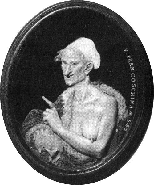 24 и 25. «Молодость» и «Старость». Раскрашенные восковые медальоны. Италия. XVII век. Эти восковые рельефы рассказывают о судьбе женской груди. На первом изображена женщина восемнадцати лет, а на втором – она же в восемьдесят лет.