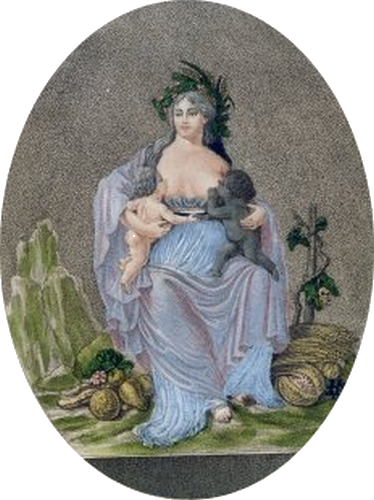 Иконография Французской революции быстро наполнилась женщинами с обнаженной грудью. Следуя классическим образцам, женские фигуры в туниках с одной или обеими обнаженными грудями стали распространенным символом новой Республики. Иногда Республику изображали в образе женщины-воина с одной обнаженной грудью, со шлемом на голове, подобно Афине, и копьем, увенчанным фригийским колпаком. В других случаях художники вспоминали о многогрудой Артемиде, и у Республики появлялось до десятка сосцов, олицетворяющих популярные идеологемы, такие как природа и разум (илл. 47). Бесчисленные рисунки, картины, гравюры, медали, рельефы и статуи превратили грудь в национальную икону.