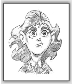 Matilda studied the portrait. It was the same painting she had seen a million times in books. But when she peered closer, she saw something peculiar in the background: silver half-moon–shaped crafts hovering in the sky shooting lasers down on the countryside below.