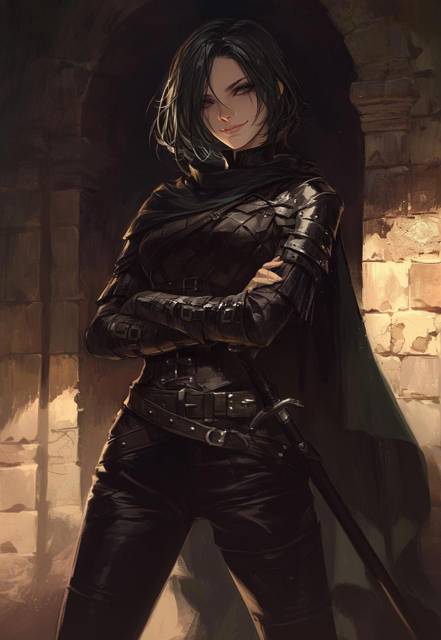 Она оделась по-походному. Я оглядел её с ног до головы: высокие сапоги, кожаные штаны, доспехи, плащ, даже ремень, на котором висела рапира – всё было чёрное. Её тёмные короткие волосы непослушно развевались на ветру.
