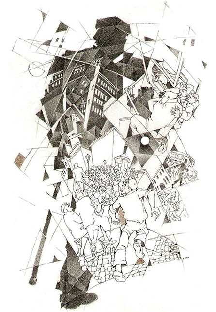 И ровно в полночь в первом из них что-то грохнуло, зазвенело, посыпалось, запрыгало. И тотчас тоненький мужской голос отчаянно закричал под музыку: «Аллилуйя!!» это ударил знаменитый Грибоедовский джаз. Покрытые испариной лица как будто засветились, показалось, что ожили на потолке нарисованные лошади, в лампах как будто прибавили свету, и вдруг, как бы сорвавшись с цепи, заплясали оба зала, а за ними заплясала и веранда.