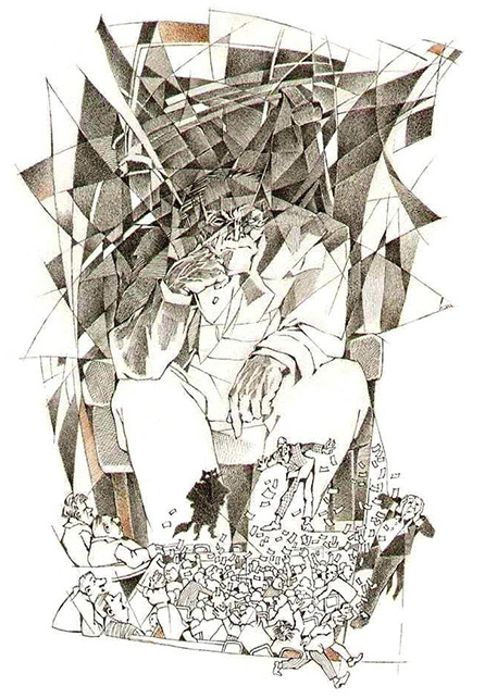 Иван работал усердно и перечеркивал написанное, и вставлял новые слова, и даже попытался нарисовать Понтия Пилата, а затем кота на задних лапах. Но и рисунки не помогли, и чем дальше – тем путанее и непонятнее становилось заявление поэта.
