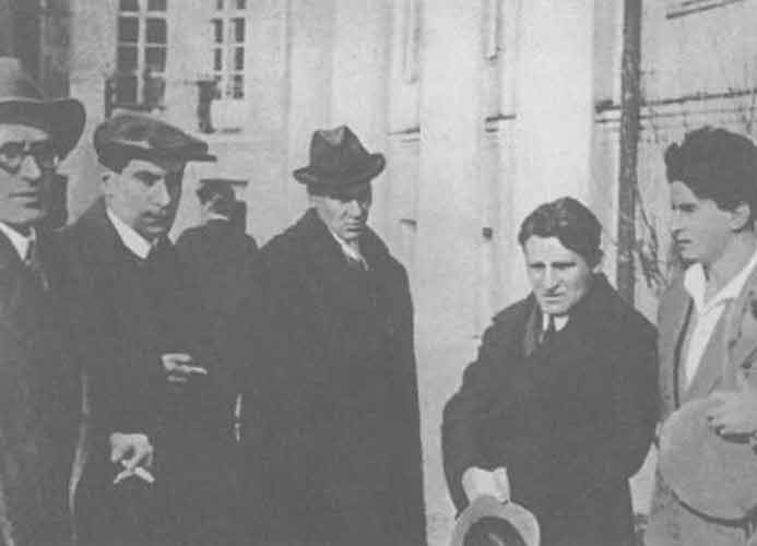 Слева направо: И. Файндильберг, В. Катаев, М. Булгаков, Ю. Олеша, И. Уткин. Москва, 1930