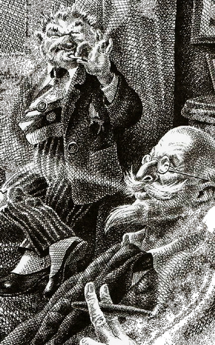 Человечек, глазами следуя пальцу, скосил их через оттопыренную губу и любовно поглядел на галстук.