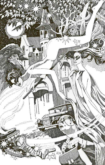 Поворачивая голову вверх и влево, летящая любовалась тем, что луна несется над нею, как сумасшедшая, обратно в Москву и в то же время странным образом стоит на месте, так что отчетливо виден на ней какой-то загадочный, темный – не то дракон, не то конек-горбунок, острой мордой обращенный к покинутому городу.