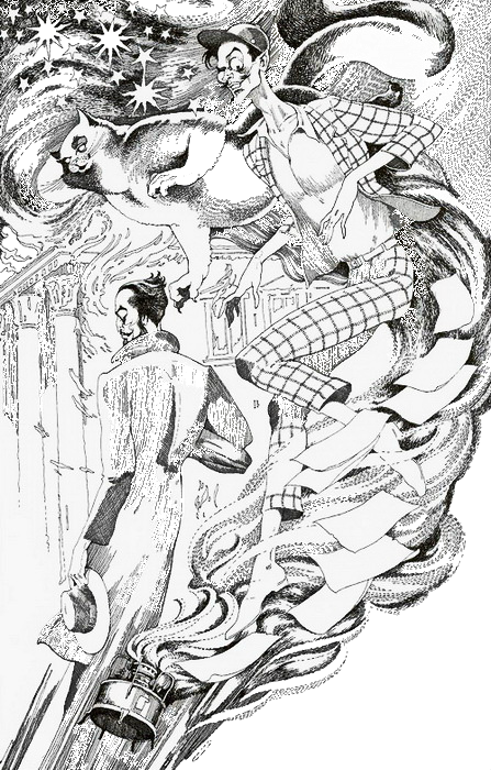 Лишь убедившись в том, что все сделано по чести, лишь тогда, когда в руках официантов прилетела закрытая сковорода, в которой что-то ворчало, Арчибальд Арчибальдович позволил себе покинуть двух загадочных посетителей, да и то предварительно шепнув им: