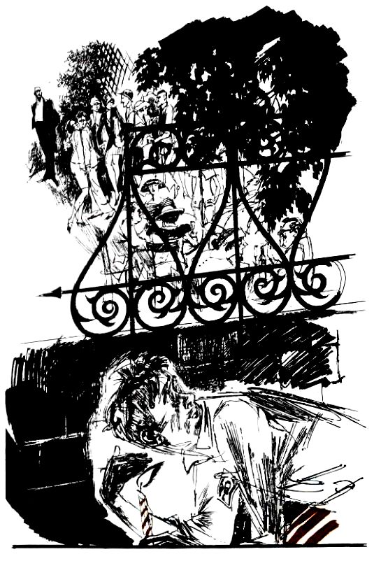– Здорово, други! – после чего заглянул под ближайший столик и воскликнул тоскливо: – Нет, его здесь нет!