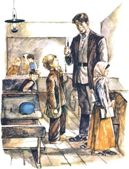 Он несмело открыл дверь и, покашливая вовсе не оттого, что першило в горле, негромко обратился к учительнице: