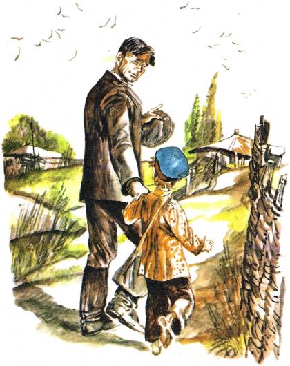 Он сжал в руке указательный палец Давыдова и, явно гордясь тем, что ведёт не просто дядю, а самого председателя колхоза, изредка оглядываясь на товарищей, вразвалочку зашагал по улице.