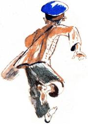 Повернувшись на одной ноге, он свистнул по-разбойничьи, в два пальца, очевидно созывая друзей, и дал такого стрекача, что в облачке пыли только чёрные пятки замелькали.