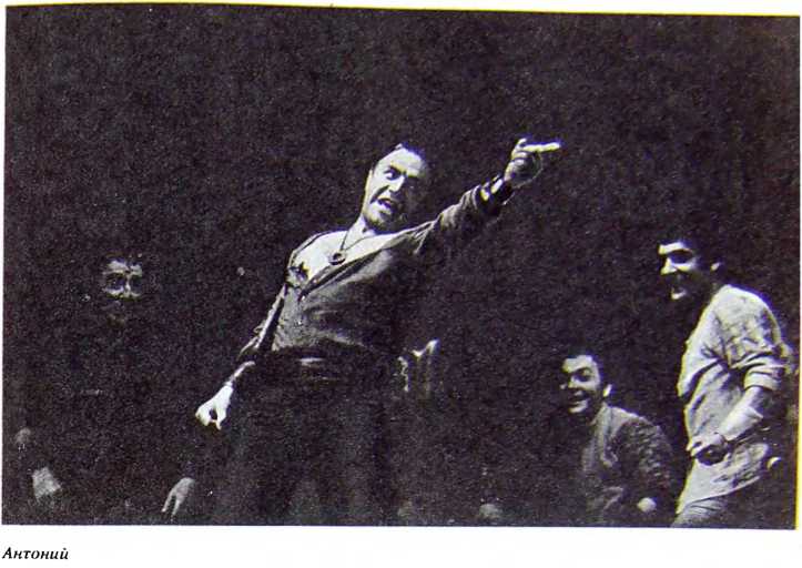 Далеко не каждому актёру выпадает это счастье. И потому, как бы ни относиться к нашей попытке поставить одну из самых «земных» трагедий Шекспира – «Антоний и Клеопатра», – эта работа была существенным, большим этапом и для постановщика спектакля Евгения Симонова й для Юлии Борисовой, игравшей Клеопатру, и для Василия Ланового – Октавиана, и для меня, пытавшегося сыграть поразительную по жизненности и реальности личность Антония. При любых трактовках Гамлет, Отелло, Лир решают не только личную трагедию, но и поднимаются в этой трагедии до всечеловеческих философских обобщений, до понимания общих пружин неустроенности и дисгармонии мира. Отталкиваясь от частного, они приходят к общему. Правда, в конце концов и многие другие герои Шекспира размышляют и постигают общие законы жизни, общие причины её трагедийности. Наверное, таков и Антоний. Но я его понял и понимаю сейчас более чувствующим, чем думающим.