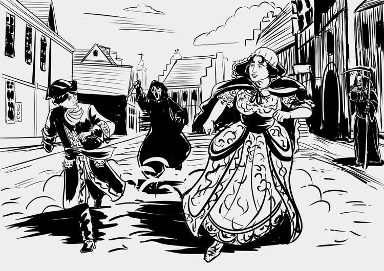 Доспехов надеть немой не успел. И имел при себе только саблю и пистолеты, которые были собраны в единый гарнитур на портупее. Прям поверх обычной одежды и накинул ее.