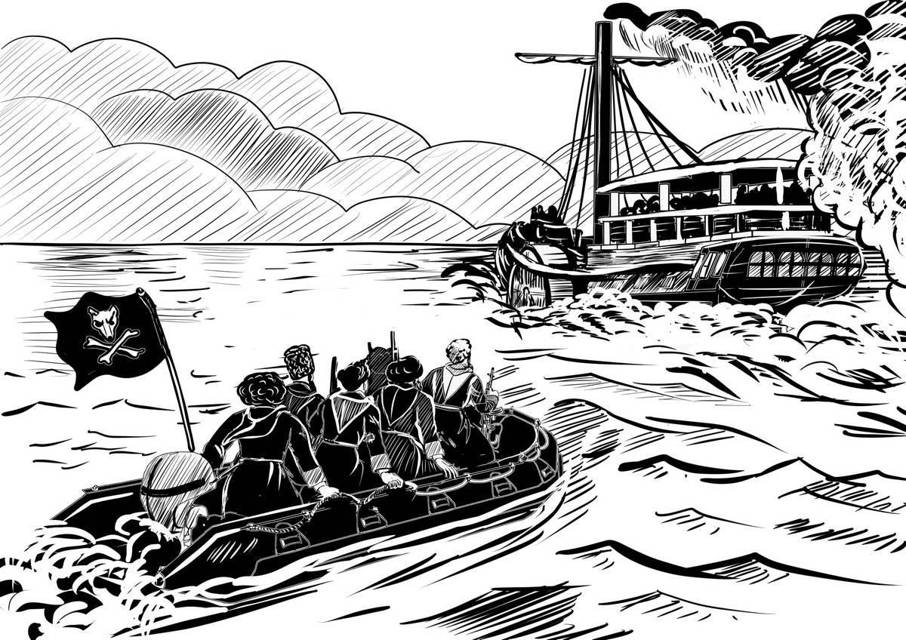 Человек двадцать повыбил, парализовав первые две лодки. Остальные, видя губительность огня, резко отвернули и попытались скрыться. Но люди графа продолжали стрелять. Как в тире… еще две минуты, стараясь «раздать подарки» на все лодки. Замедляя их и не давая уйти. Заодно сам пароход заложил крутой маневр, сменив курс, начав их догонять.