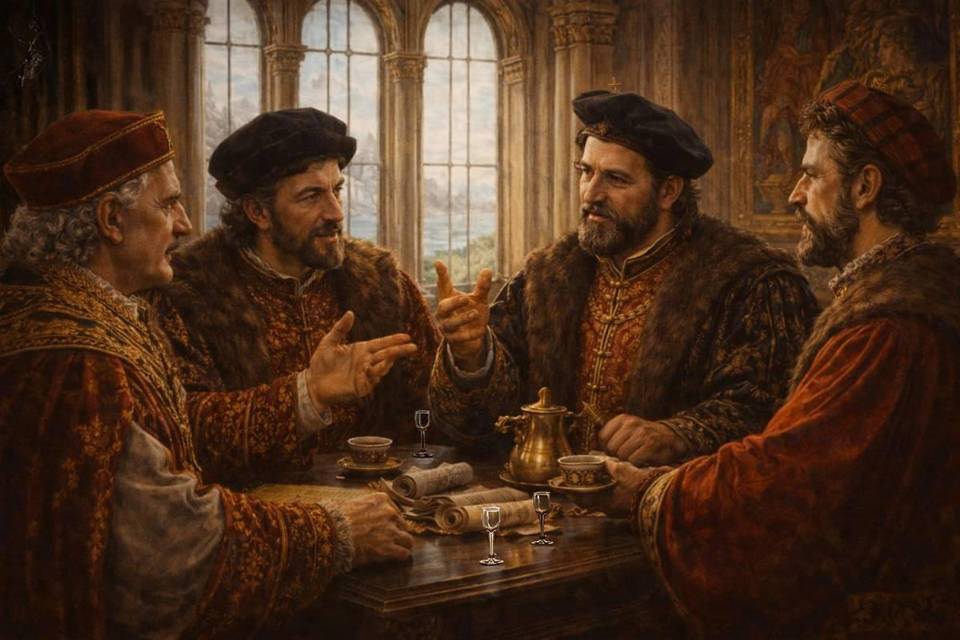 Первым спустился Джованни Джустиниани Лонго со своей неизменно харизматичной улыбкой. Без доспехов. Подчеркнуто. Просто дорогая одежда и клинок для статуса на поясе.