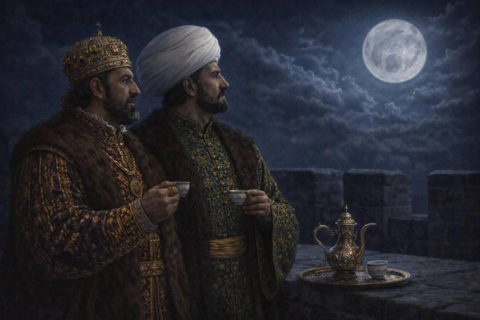 – Вам не спится? – спросил Константин, подходя к принцу Орхану, который разместился с кофейником на стене и любовался ночным небом.
