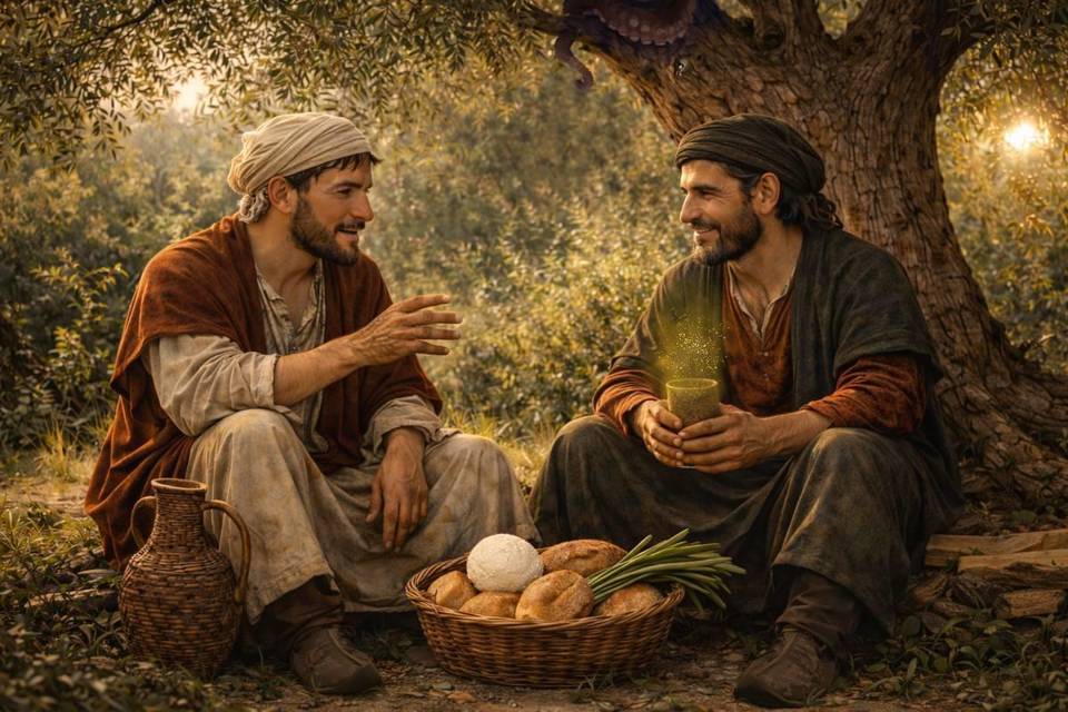 В то же самое время недалеко от Мистры, в Лаконии встретились два кума-крестьянина.