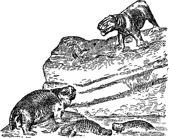 Из их остатков особенно интересны для нас странные скелеты, в которых признаки пресмыкающихся перемешаны с особенностями млекопитающих животных, т. е. тех покрытых шерстью зверей, самки которых кормят детенышей молоком (таковы, например, коровы, свиньи, кошки, собаки и вообще все хищные, копытные, грызуны, обезьяны и др.). До нас дошли удивительные кости звероподобных пресмыкающихся, у которых устройство ног и зубов очень напоминало млекопитающих животных, в те времена еще не существовавших на Земле. За сходство со зверями эта порода и получила название «звероподобных».