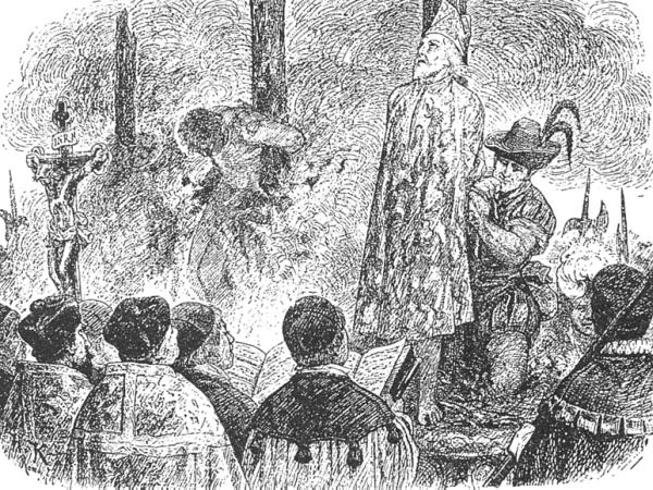 В 1020 году в стенах Тулузы происходили первые сожжения еретиков. Через два года то же самое повторилось в Орлеане. Тогда погибло тринадцать еретиков, к великой скорби церкви, все тринадцать – священники. В 1146 и 1163 году те же костры пылают в Германии, освещая бдительному оку места, пораженные ересью. В Риме поняли наконец, как запустел вертоград религии... В 1179 году папа Александр III созвал в Риме так называемый третий Латеранский собор и произнес отлучение против еретиков Гаскони, “земель Альби и Тулузы”, “потому что, – говорилось в постановлении собора, – эти еретики не скрываются уже и не остаются спокойными, но дерзко проповедуют свои заблуждения и совращают простых и слабых”. Нож анафемы поражал одновременно королевства Аррагонию и Наварру. Тамошние еретики и их покровители обвинялись собором даже в преследовании правоверных, в осквернении церквей, в обиде вдов и сирот. Папа призывал верующих не иметь с еретиками никаких сношений, позволял нарушать договоры с ними, употреблять против них оружие и конфисковывать их имущество, а христианским правителям – обращать их в рабство. “Хотя церковь, – говорилось в 27-м постановлении собора, – следуя св. папе Льву, довольствуется часто одним судом первосвященническим и не принимает кровавых мер, однако он может быть вспомоществуем и мирскими силами, дабы страхом казни побудить людей следовать духовному врачеванию. А так как еретики, которых одни называют катарами, другие патернами, прочие побликанами (павликианами), – так смутны были еще в это время сведения римской церкви о ее врагах, – сделали великие успехи в Гаскони, Альбижуа, земле Тулузской и иных местах, то мы предаем анафеме их с их покровителями и сообщниками и запрещаем всякому, кто бы то ни был, иметь с ними общение. Если они умрут в грехе, то никогда не поминать их и не хоронить между христианами”.