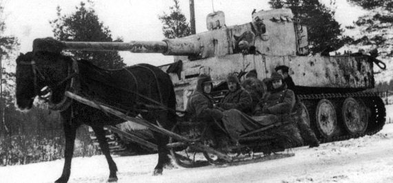 Зимой «тигры» 502-го батальона целиком окрашивались в белый цвет. Восточный фронт, январь 1944 года.