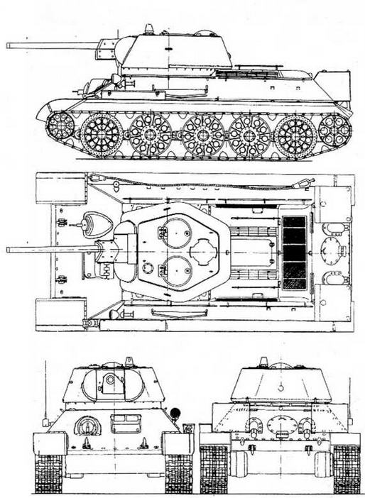 Самый массовый и наиболее популярный советский танк второй мировой войны. Разработан в КБ завода № 183 (г.Харьков). Принят на вооружение Красной Армии постановлением КО при СНК СССР № 443сс от 19 декабря 1939 года. Серийно выпускался заводами № 183 ХПЗ (г.Харьков), № 183 УВЗ * (г.Нижний Тагил), СТЗ (г.Сталинград), № 112 (г.Горький), УЗТМ (г.Свердловск), ЧКЗ (г.Челябинск) и № 174 (г.Омск). С 1940 по 1944 год изготовлено 33 805 единиц.