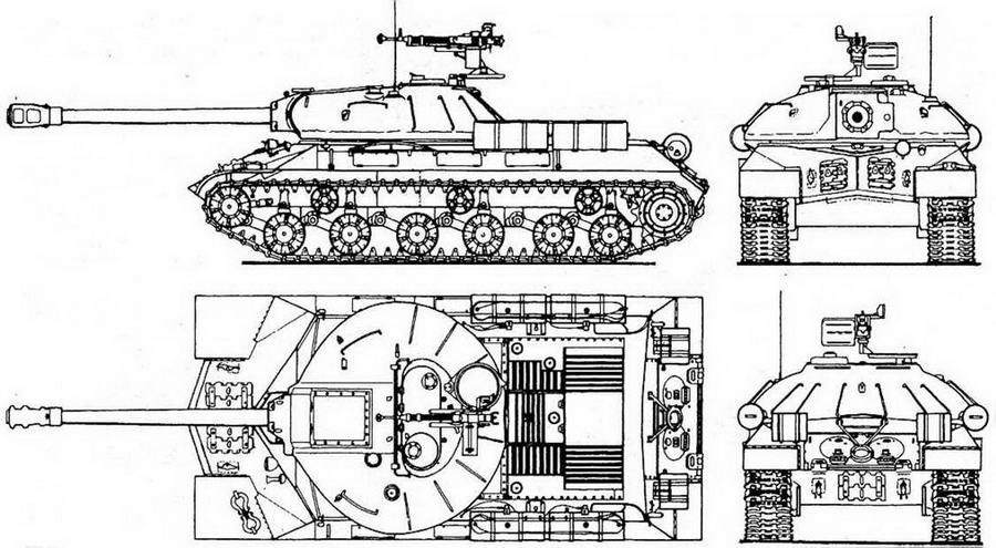 ИС-2 (объект 240)—ИС-1 со 122-мм пушкой Д-25Т. Пушки на танках первых выпусков имели поршневой затвор. У машин поздних выпусков – сварная лобовая часть корпуса. Изготовлено 3483 единицы.