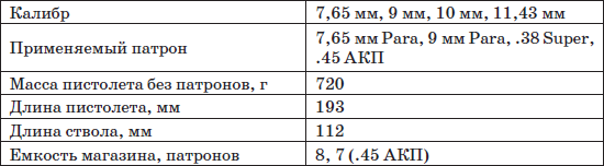 Основные черты конструкции пистолета: возвратная пружина надета на ствол; ударно-спусковой механизм не самовзводный, для производства первого выстрела необходимо ручное взведение курка.
