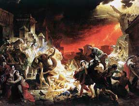 Вскоре он увидел как по земле медленно текло что-то чёрное и вязкое, похожее на смолу. Большинству людей удавалось на время удаляться от потока лавы. Но часть из них, особенно старых и немощных, поглощал неумолимый поток. Несчастные в муках и боли просили о помощи, пока окончательно не исчезали в чёрной жиже.