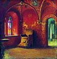 Неожиданно хранитель открыл боковую дверь в небольшую комнатку. Внутреннее убранство комнаты заливал странный красноватый свет. Мук почувствовал тошноту. Ему стало очень плохо от этого света. Не выдержав он упал на пол и заплакал.