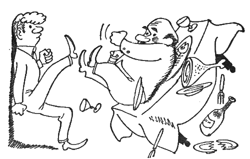 Однако знающий свои обязанности Друг, ощетинившись, приблизился к левой штанине романтика и вторично предупредительно рявкнул. Чтобы избавиться от надоедливого стража, Прохорчук стал уводить свою даму подальше, в глубь комнаты. Друг не отставал. Тогда догадливый главбух-поэт решил переместиться с партнершей в соседнюю комнату, чтобы танцевать там за закрытой дверью.