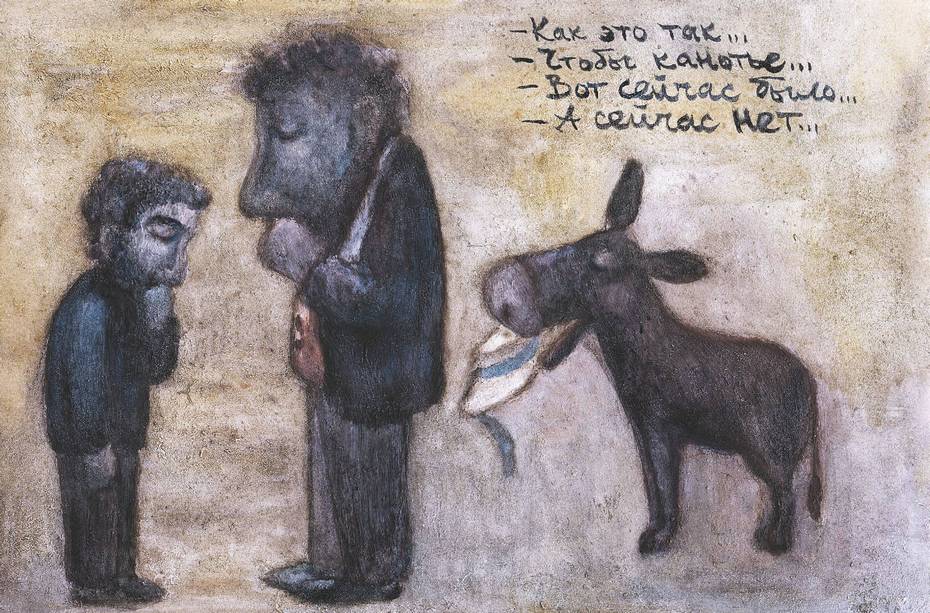 Из картины донесся рев Осла. Я глянул в нее. Осел сплюнул и вытер копытом рот. Рядом с ним валялась обертка от печенья «Юбилейное». А когда я отвернулся от картины в комнату, сковороды с яичницей не было. Как не было и девицы Ирки Бунжурны. А когда я отвернулся от комнаты, то Осел и Шломо Грамотный ели яичницу с помидорами, хлебом, вымоченным в молоке, и копченым окороком прямо со сковороды.