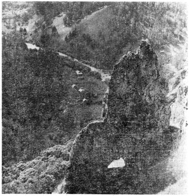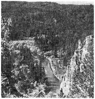 Слева по склонам гор вновь темные хвойные леса, а справа… Справа мы подходим к интересному участку реки, к выветренным древним скалам, которые, как изваяния, стоят над склонами долины. Присмотритесь к ним с реки. Нужно непременно сходить туда пешком и осмотреть все это вблизи.