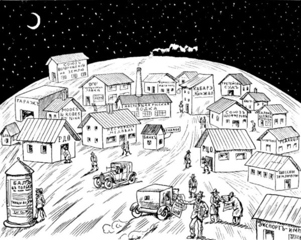 С этого дня знаменитый изобретатель, господин Дельво, стал жаловаться на усталость, разочарование в жизни и скоро тихо скончался. И с его смертью погибли таинственные планы летательной машины, потому что никто, кроме него, не мог разгадать ее системы и секрета конструкции. Больше ни одно слово не донеслось на землю с насмешливо ухмыляющейся Луны. Только иногда, в полнолуния, людям казалось, что складки и тени на Луне начинают сморщиваться в оскорбительную гримасу смеха и тогда астрономы обиженно бросали свои трубы и говорили, что стекла запотели и не видно ничего.