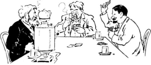 И правда, жилось Изоту Макаровичу недурно. Священная память Матвея Кислого его охраняла, как броней из двойной ванадиевой стали. Соседи ему завидовали. Шел ему тройной паек с винцом. По декрету имел он право держать во дворе трех кур с лоншанским петухом, в доме – образа, герань, канарейку и холощеного кота, а в огороде: березку, две грядки и куст крыжовника. Хотели было отобрать у него колоду разбухших засаленных карт, но Макарыч уперся, забурлил и… оставили. Да и мало того: власти знали, что последний буржуй сохранил старую привычку играть в «козла» с Прохором Парфентьичем, холодным сапожником, и Никифором, кладбищенским сторожем.