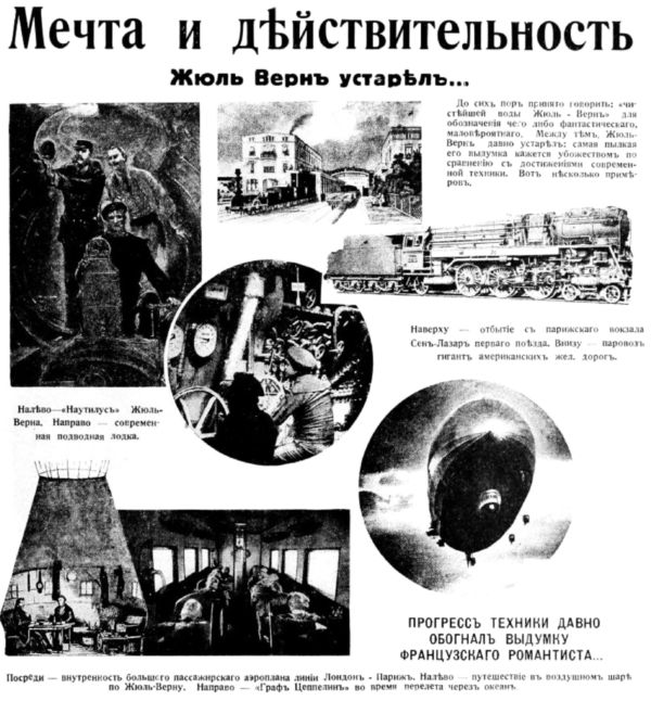 До сих пор принято говорить: «чистейшей воды Жюль Верн» для обозначения чего-либо фантастического, маловероятного. Между тем, Жюль Верн давно устарел: самая пылкая его выдумка кажется убожеством по сравнения с достижениями современной техники.