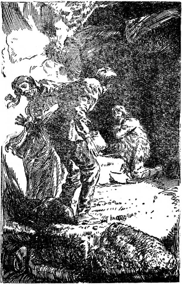 Перед Висковским раскрылась широкая, светлая долина. Обрадованный геолог сделал движение, намереваясь бежать, но остался в прежнем положении. Странный вид поразил его: кости, груды костей и человеческих черепов лежали на земле, а вдалеке долина, казалось, была покрыта глубоким снегом. Не зная, идти ли дальше или искать другого пути, Висковский повернулся и невольно отпрянул назад. У подножия горы, в пещере, горела свеча. В следующую минуту из пещеры вышел сгорбленный человек. Покрывало на плечах, серые мохнатые сапоги… И сразу Висковский узнал старика.