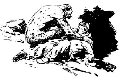 Он долго смотрел на меня изучающими, умными, совершенно человечьими глазами. Сидя на корточках, он упирался, широко расставив руки, костяшками полусогнутых пальцев в землю. Большие пальцы на ногах, толстые, мохнатые и корявые, тоже оттопыривались в стороны, и весь гули-бьябон походил на огромную обезьяну. Я ждал, что он сейчас дружелюбно хрюкнет, как это делают гориллы в зоопарке после вкусного угощения. Но он опять произнес свое «бу», и опять это был какой-то непонятный для меня вопрос.