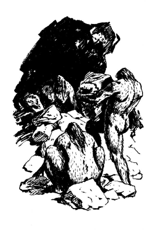 Стояла жара, и мы часто прерывали работу, чтобы поесть снегу. У меня начинала кружиться от голода голова, снова разболелась разбитая коленка, но мои гули-бьябоны и не помышляли прекращать выборку камня из ниши. Она медленно углублялась и углублялась. Рядом вырос целый курган из камня, почти в два моих роста. Над нами то и дело кружились снежные сипы, но ни один не осмелился спуститься к мертвой Уа, лежавшей поодаль.
