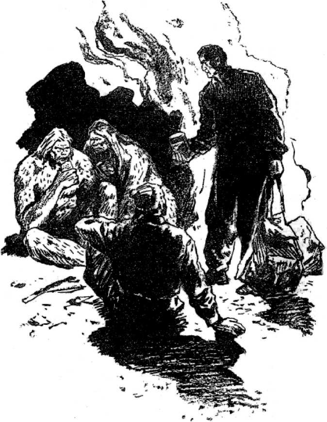 Я рассказал ему, что гули-бьябоны предпочитают находиться на открытом воздухе. Кэнт покладисто согласился, быстро развел костер и начал готовить ужин, чтобы покормить нас. Это был очень подвижный, сухощавый пожилой человек с энергичным лицом, на котором сильно выдавались вперед решительный подбородок, орлиный нос, тонкие губы. Одет как альпинист. Короткая, седая и круто вьющаяся шевелюра, словно мерлушковая шапочка, заменяла ему головной убор.