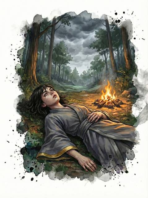 Когда разгорелся костёр, Аледо в новой, чистой одежде даже не легла, а рухнула рядом с ним, уставилась невидящим взглядом в небо, которое ещё даже не собиралось темнеть, но затягивалось тяжёлыми тучами. Что она там видела, чьи образы появлялись у неё перед глазами – осталось её тайной. Я думал о том, что делать, если пойдёт дождь, – есть ли у меня в кольце формация на этот случай, или обойтись просто сжатой духовной силой. Но когда на лес, наш костёр и небо наползла ночь – дождь так и не пошёл, а Аледо уже спала, и руки её то и дело вздрагивали.