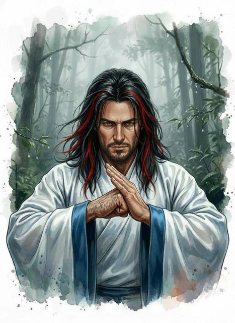 Я сосредоточился на его образе. Сорок лет, густая и длинная щетина, тёмные волосы до плеч, тронутые алым цветом.