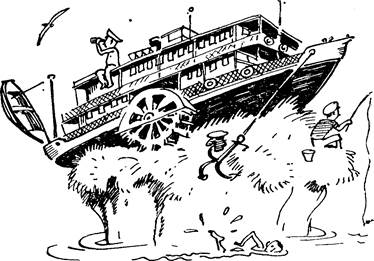 Как опытный моряк, я пытался выправить крен, но, поскользнувшись, потерял устойчивость, шлепнулся грудью о борт. Лодка накренилась еще сильней, и мы оказались в воде.