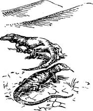 Сухопутным крокодилом Захар назвал серого варана земзем – громадную ящерицу розовато-песчаного цвета. Длина взрослого варана достигает полутора метров. Интересно, что это пресмыкающееся предпочитает селиться в норах других животных и редко роет собственную нору.