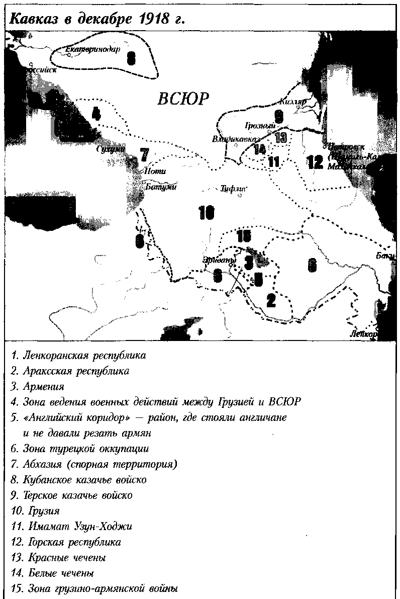 Еще в мае 1918 г. англичане высадились в Новороссийске. Тут они ограничились защитой железной дороги (поддерживая не столько белогвардейцев, сколько грузин).