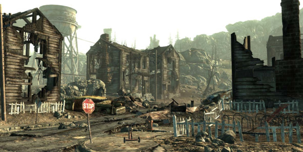 В Fallout: New Vegas (2010, Obsidian Entertainment) действие игры разворачивается в окрестностях города Новый Вегас, расположенного в пустыне Мохаве. Игровой мир представляет собой гигантскую пустошь, выжженную ядерной войной, где можно посетить десятки интересных мест. Путешествуя по миру игры, мы постоянно видим на горизонте различные достопримечательности.