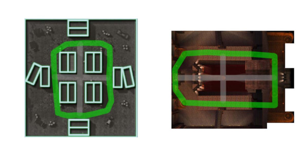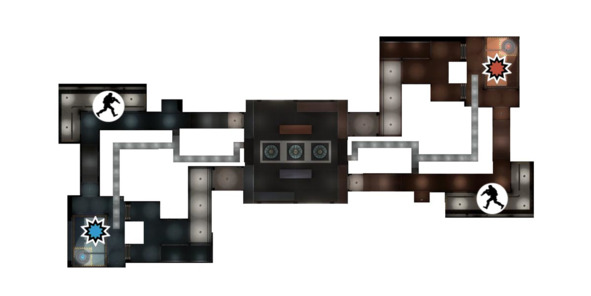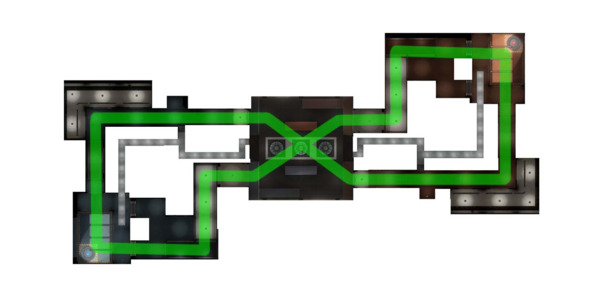 Такая планировка подразумевает активную командную работу и скоординированный прорыв или оборону сразу на двух основных маршрутах.