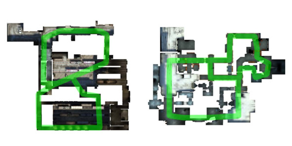 За примером планировки «Круг + Восьмерка» обратимся к классическим уровням из Counter-Strike: Global Offensive (2012, Valve) под названием «Dust 2» и «Aztec». Стоит помнить, что сочетание «0+8» является наиболее оптимальным – дальнейшее усложнение планировки вашего уровня по принципу «8+8» превратит его в лабиринт и сделает геймплей менее интересным.